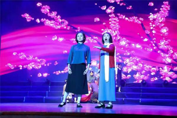 根據(jù)黨的百年奮斗征程,整場演出共分為五大篇章?!独C紅旗、紅梅贊》在第一篇章《紅日照東方》中出場,它情景再現(xiàn)了江姐在得知新中國成立這一振奮人心的消息后,扯下紅花被面,與獄友們縫制五星紅旗的激動場面,追憶了江姐等共產(chǎn)黨人視死如歸、鋼鐵般的意志。本次活動共在鄂爾多斯恰特、泊江海子煤礦、塔拉壕煤礦進行了3個場次演出,豐富多彩的文藝節(jié)目為現(xiàn)場觀眾獻上了一場極具震撼力的視聽盛宴。